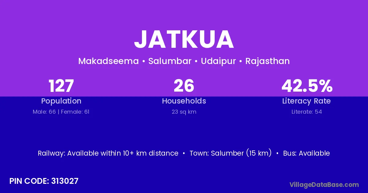 Salumber (15 km) is the nearest town to Jatkua village for major economic activities and is located approximately 15 km away.