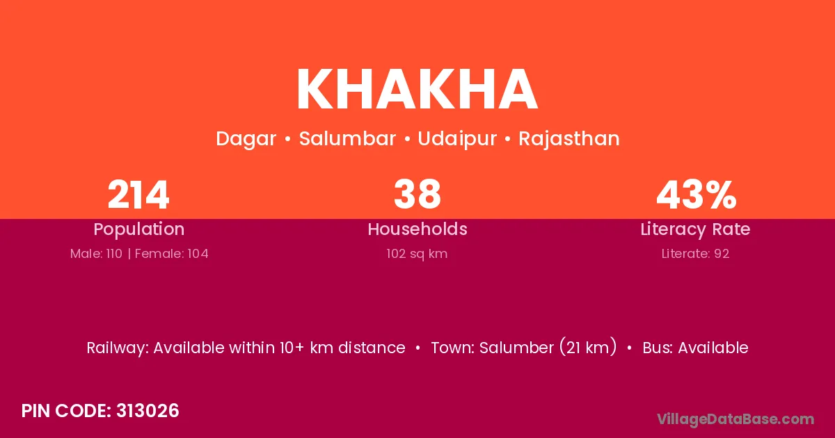 Salumber (21 km) is the nearest town to Khakha village for major economic activities and is located approximately 21 km away.