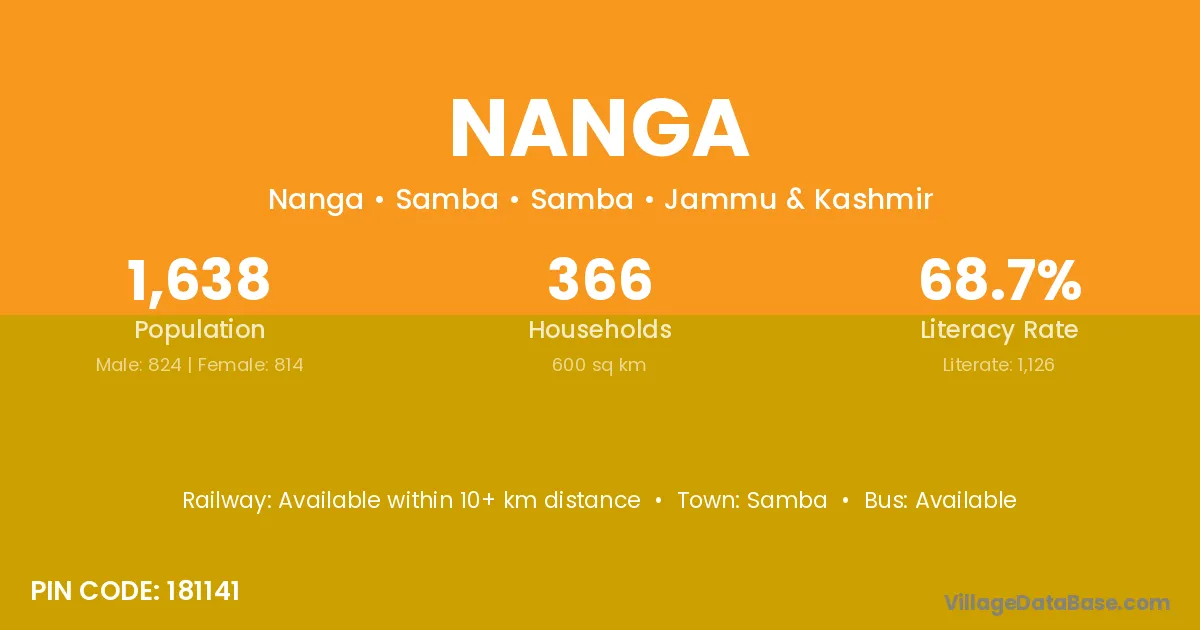 The literacy rate of Nanga village is 54.32%. Male literacy stands at 61.90% and female literacy at 45.80%.