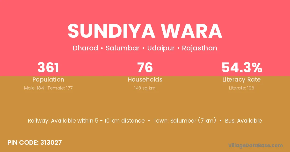 Salumber (7 km) is the nearest town to Sundiya Wara village for major economic activities and is located approximately 7 km away.