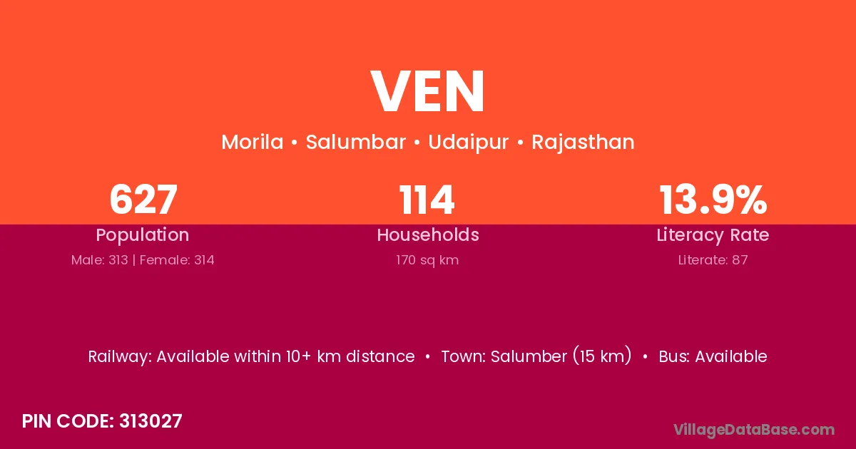 Salumber (15 km) is the nearest town to Ven village for major economic activities and is located approximately 15 km away.