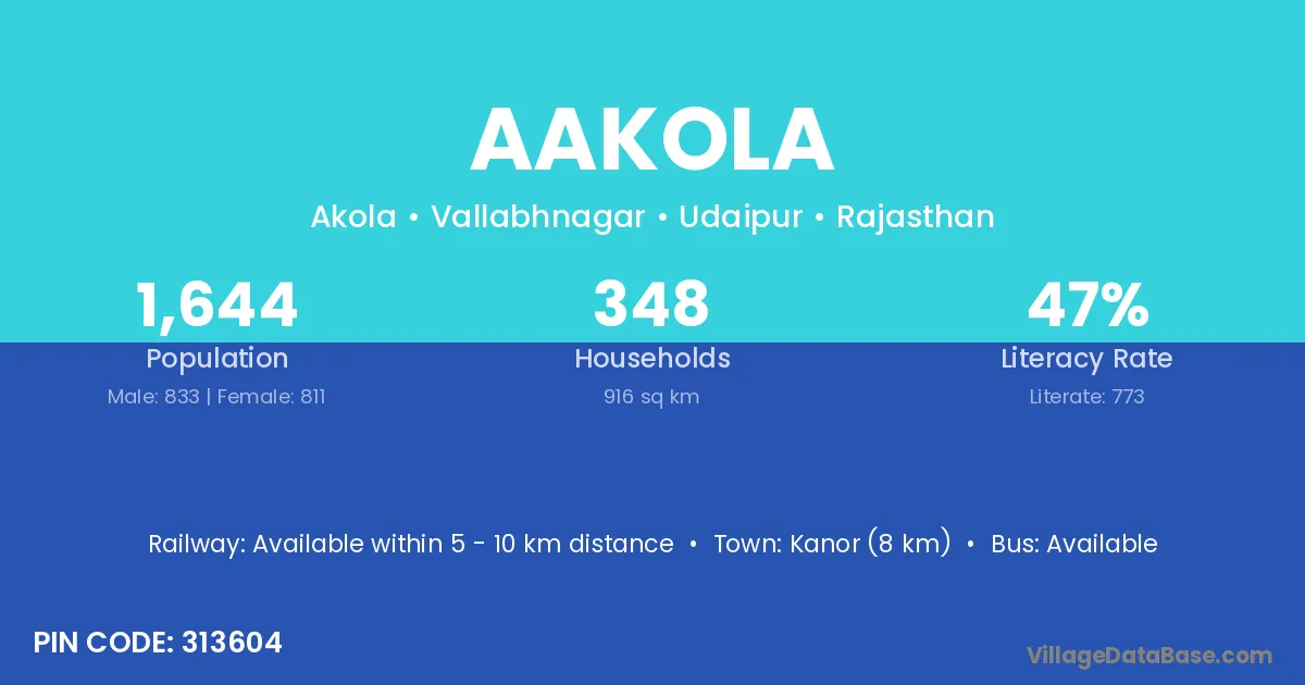 Aakola village has a total population of 1,644 people, of which 833 are males and 811 are females.