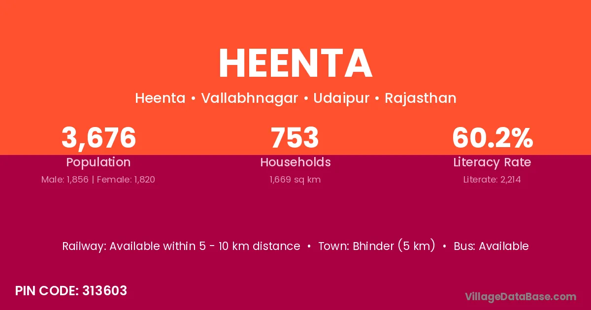 According to Census 2011 information, the village code of Heenta village is 313603.