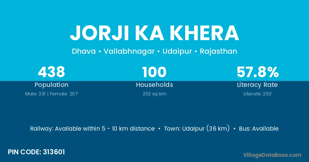 Jorji Ka Khera village has a total population of 438 people, of which 231 are males and 207 are females.
