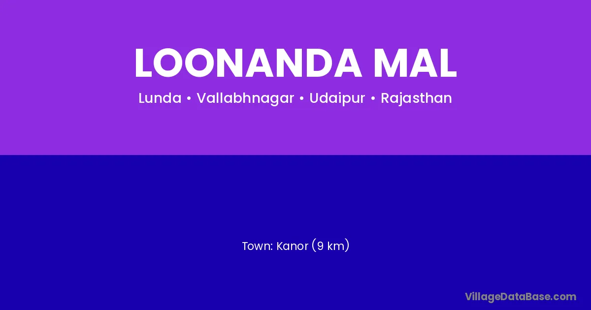Kanor (9 km) is the nearest town to Loonanda Mal village for major economic activities and is located approximately 9 km away.