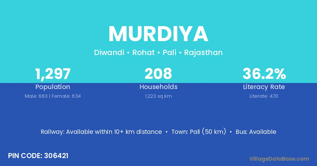 Fatehnagar (15 km) is the nearest town to Murdiya village for major economic activities and is located approximately 15 km away.