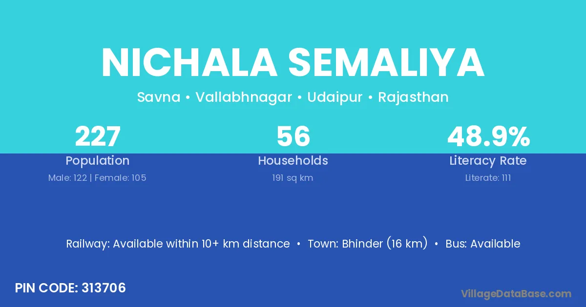 Nichala Semaliya village has a total population of 227 people, of which 122 are males and 105 are females.