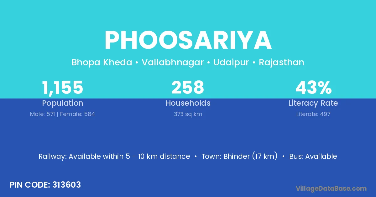 Phoosariya village has a total population of 1,155 people, of which 571 are males and 584 are females.