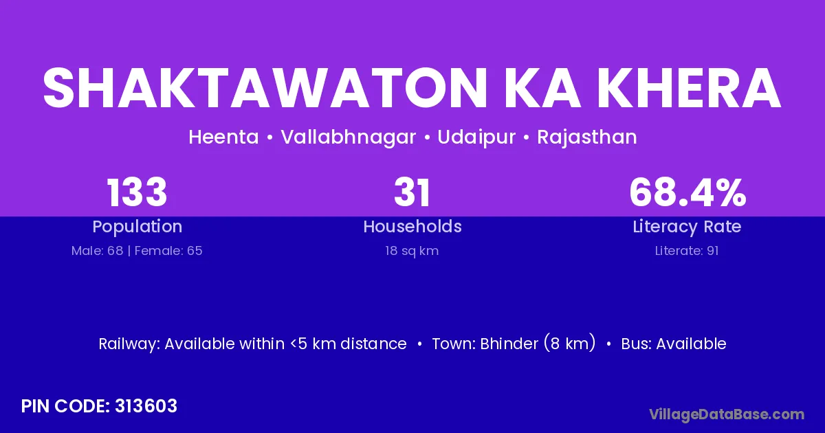 Shaktawaton Ka Khera village has a total population of 133 people, of which 68 are males and 65 are females.