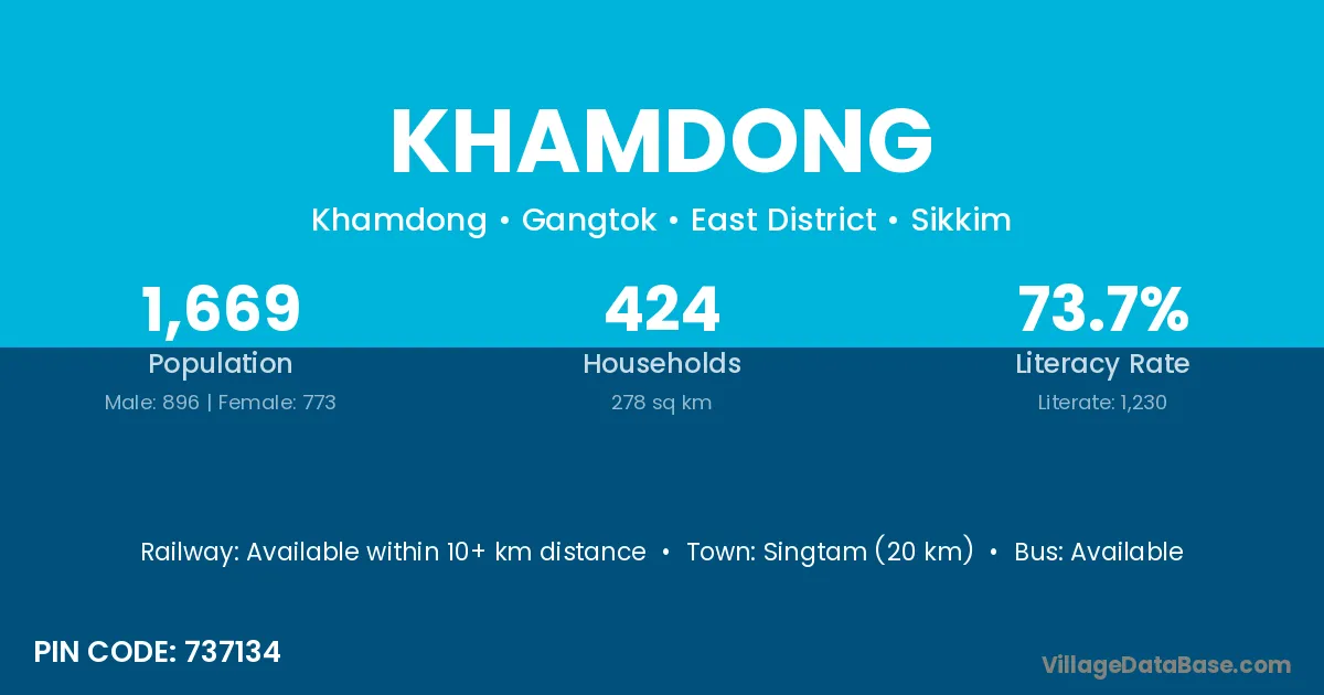 Singtam (20 km) is the nearest town to Khamdong village for major economic activities and is located approximately 20 km away.