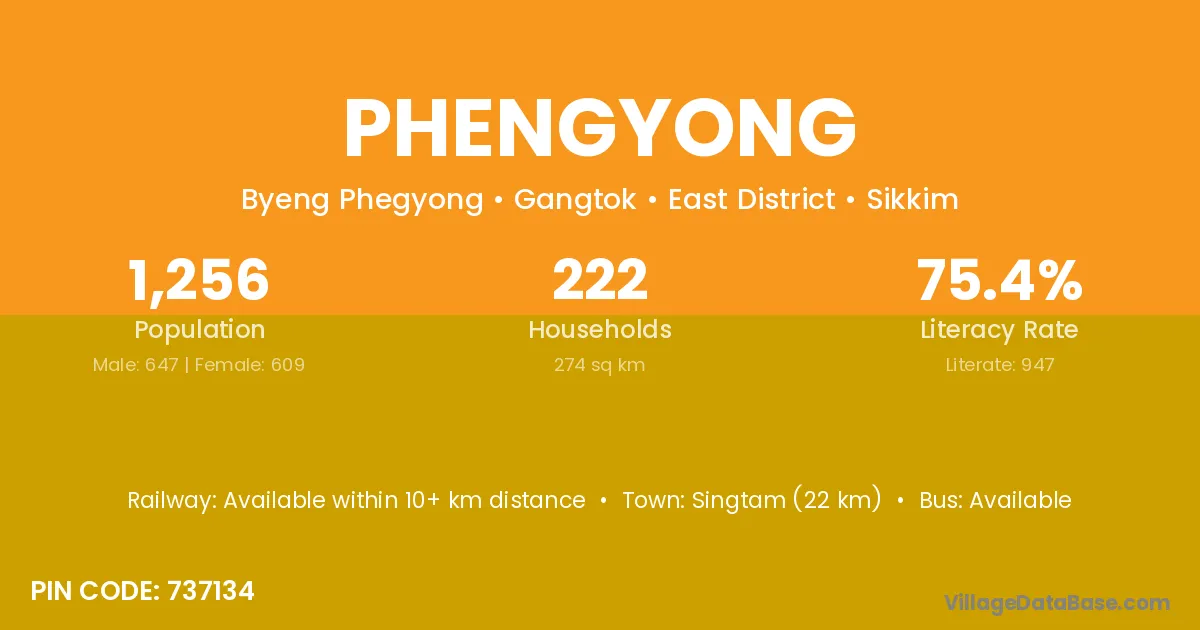 Singtam (22 km) is the nearest town to Phengyong village for major economic activities and is located approximately 22 km away.