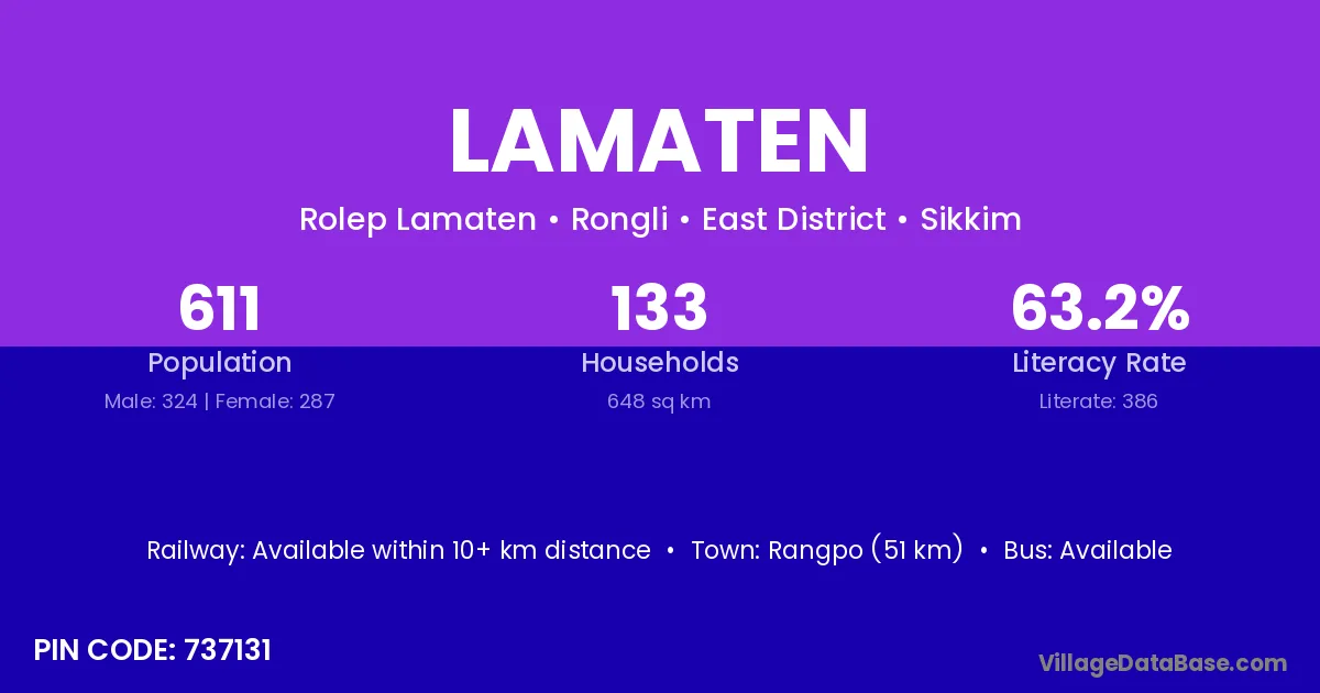 According to Census 2011 information, the village code of Lamaten village is 737131.
