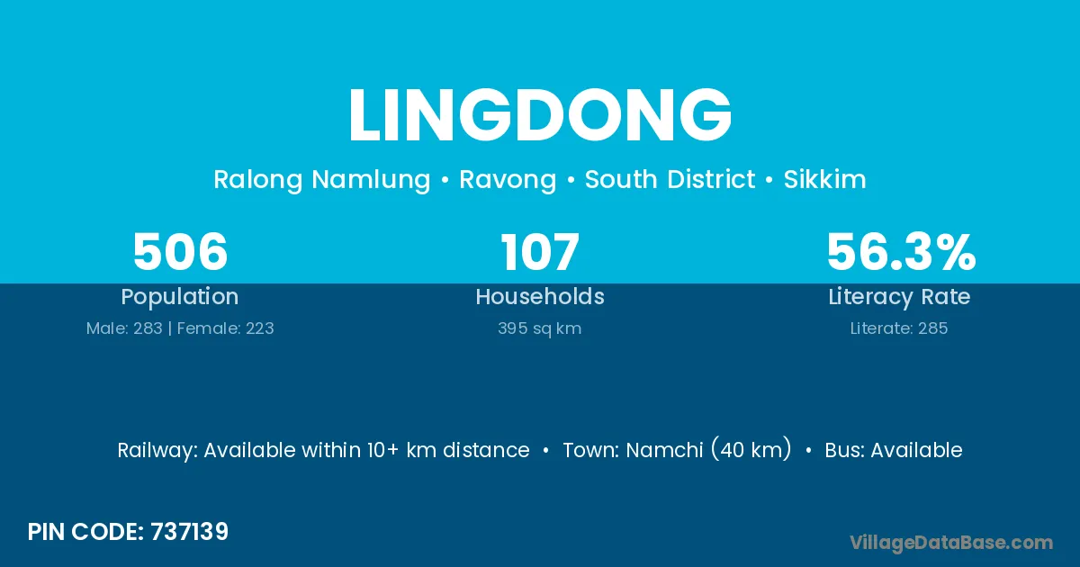 Mangan (12 km) is the nearest town to Lingdong village for major economic activities and is located approximately 12 km away.