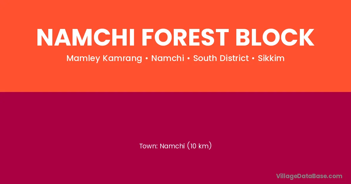Namchi (10 km) is the nearest town to Namchi Forest Block village for major economic activities and is located approximately 10 km away.