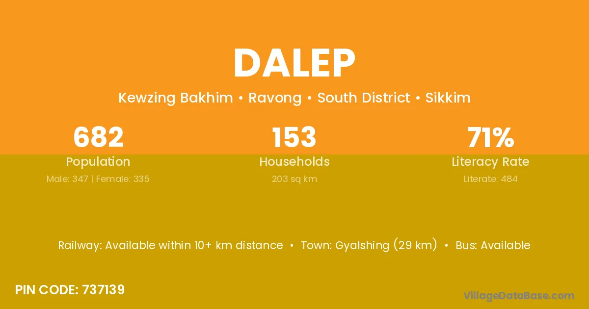 Gyalshing (29 km) is the nearest town to Dalep village for major economic activities and is located approximately 29 km away.