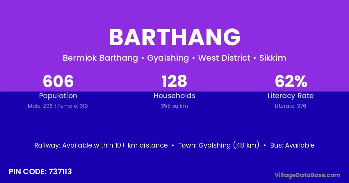 According to Census 2011 information, the village code of Barthang village is 737113.