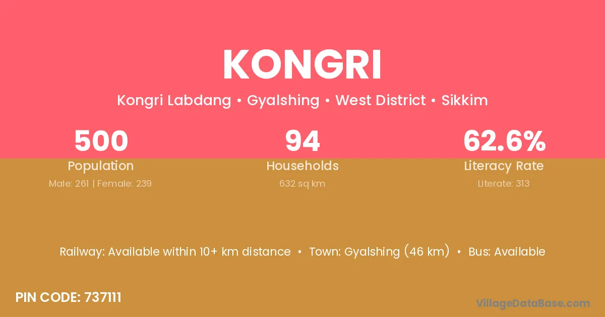 According to Census 2011 information, the village code of Kongri village is 737111.