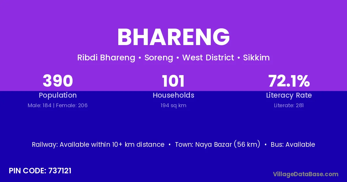According to Census 2011 information, the village code of Bhareng village is 737121.