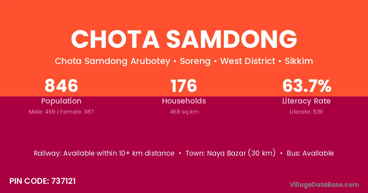 According to Census 2011 information, the village code of Chota Samdong village is 737121.