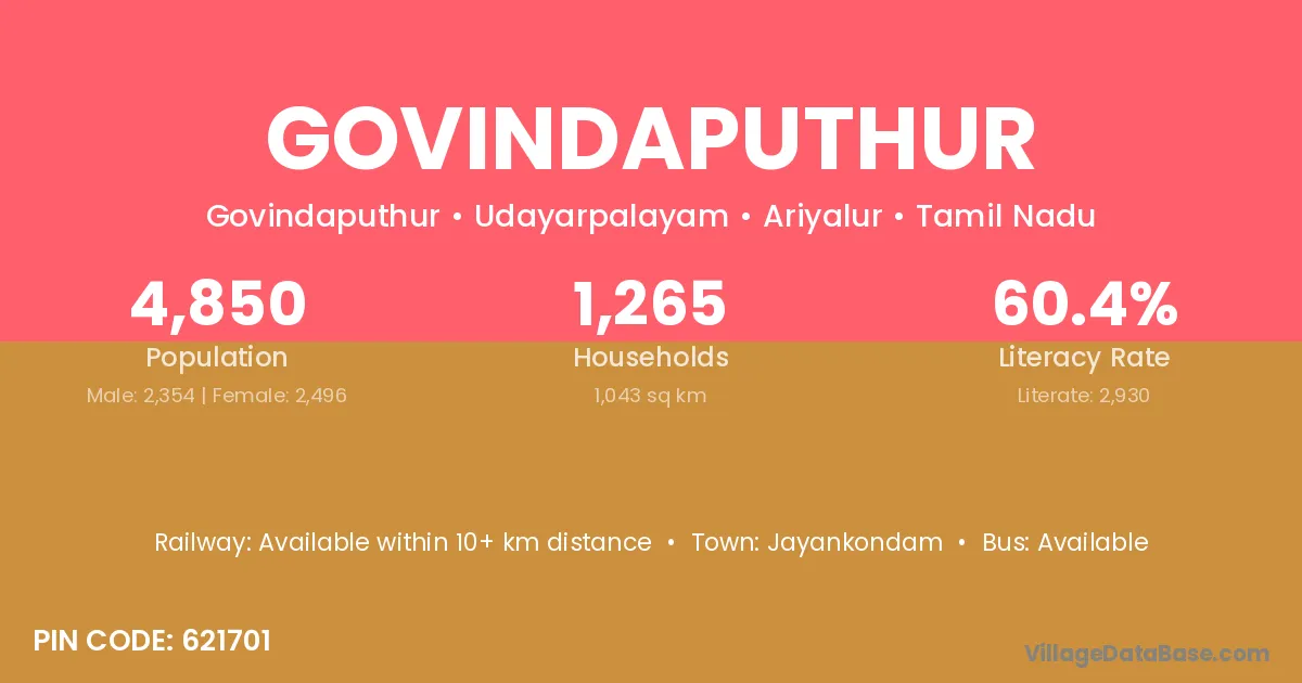 Jayankondam is the nearest town to Govindaputhur village for major economic activities