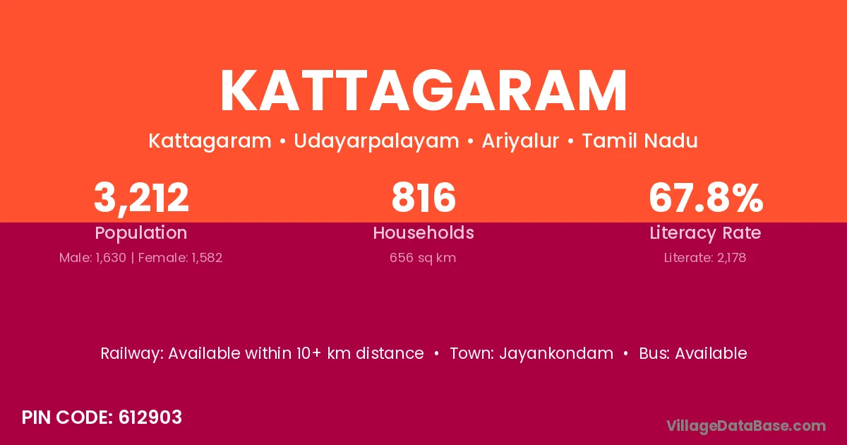 Jayankondam is the nearest town to Kattagaram village for major economic activities