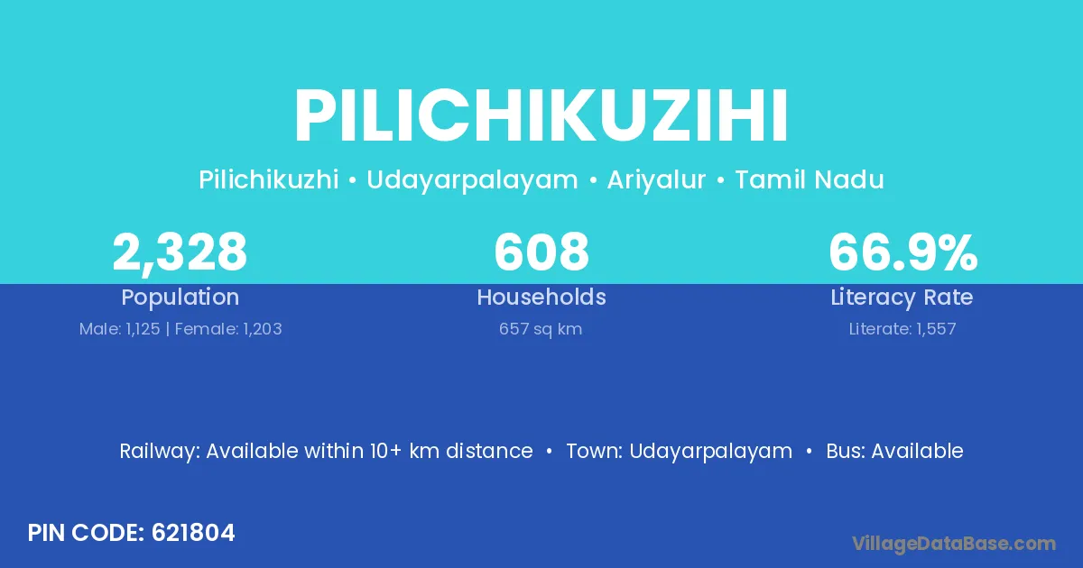 Udayarpalayam is the nearest town to Pilichikuzihi village for major economic activities