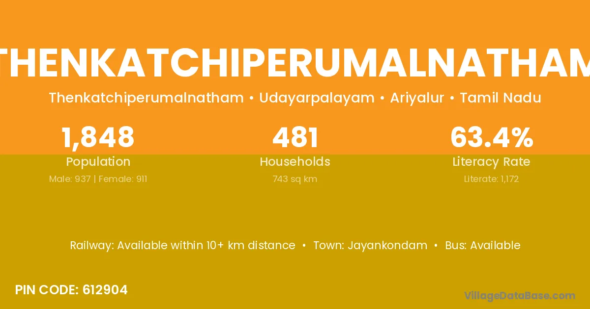 Jayankondam is the nearest town to Thenkatchiperumalnatham village for major economic activities