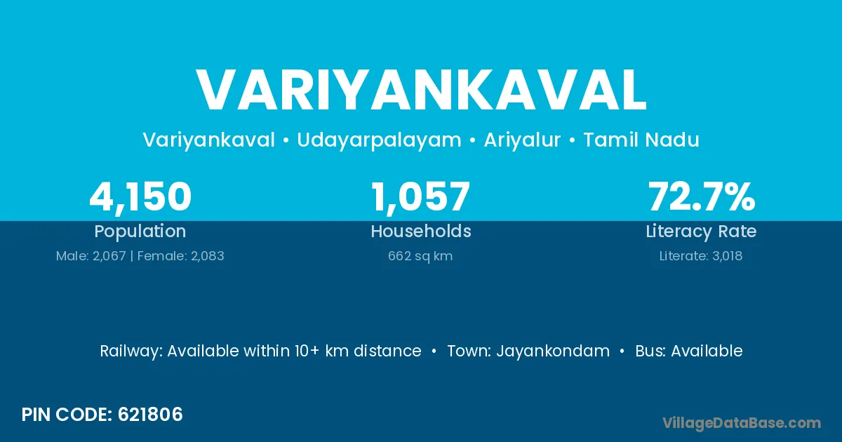 Jayankondam is the nearest town to Variyankaval village for major economic activities