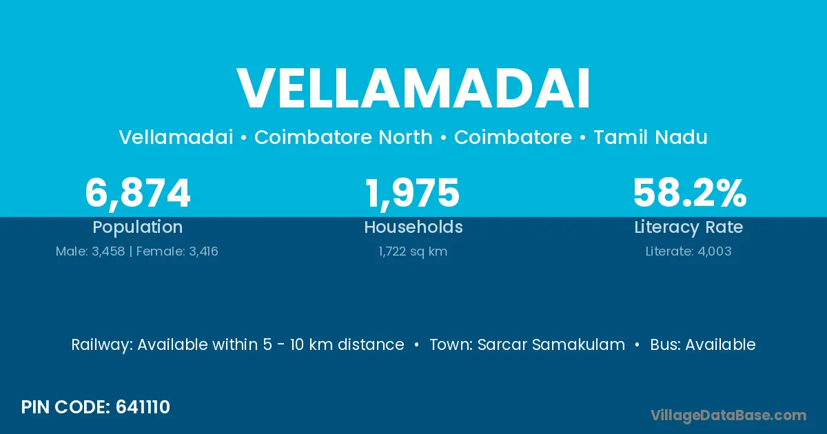 According to Census 2011 information, the village code of Vellamadai village is 641110.