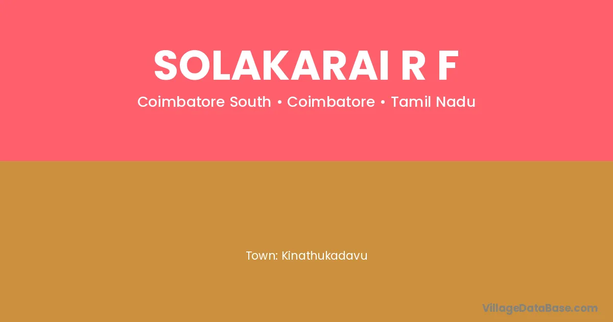 Solakarai R F village is located in the Coimbatore South Taluka of the Coimbatore district in Tamil Nadu .