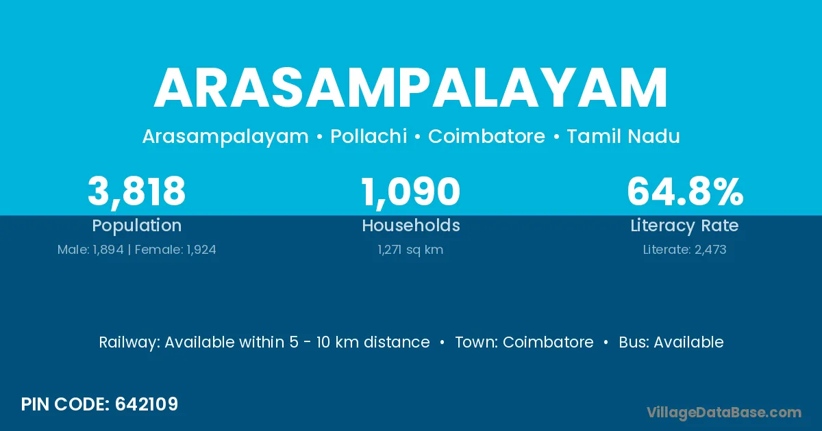 According to Census 2011 information, the village code of Arasampalayam village is 642109.