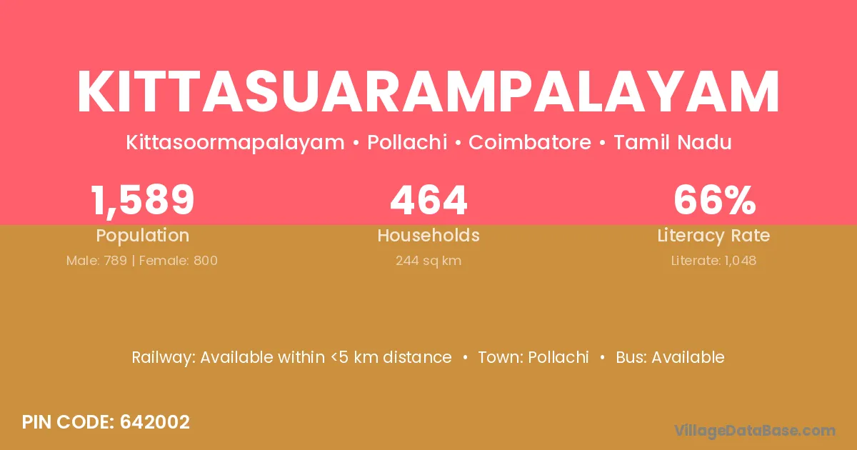 According to Census 2011 information, the village code of Kittasuarampalayam village is 642002.