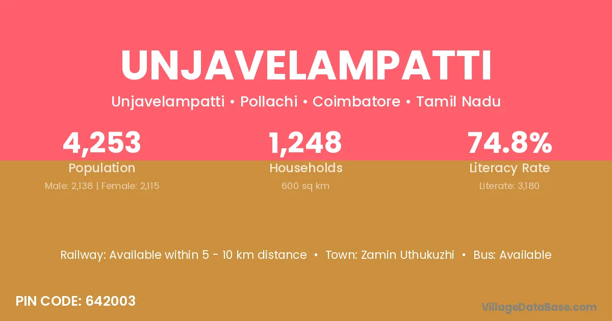 According to Census 2011 information, the village code of Unjavelampatti village is 642003.