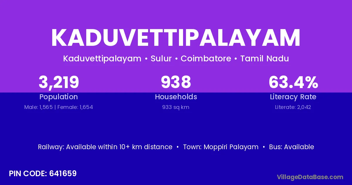 According to Census 2011 information, the village code of Kaduvettipalayam village is 641659.