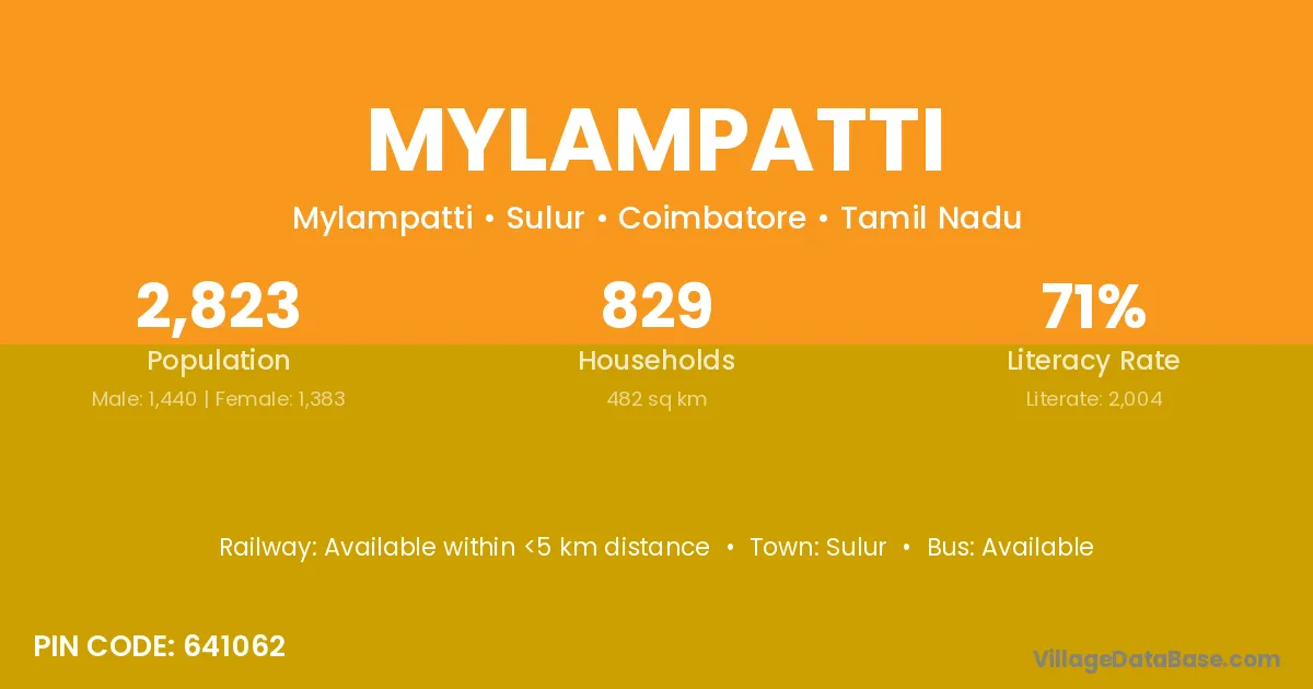 According to Census 2011 information, the village code of Mylampatti village is 641062.