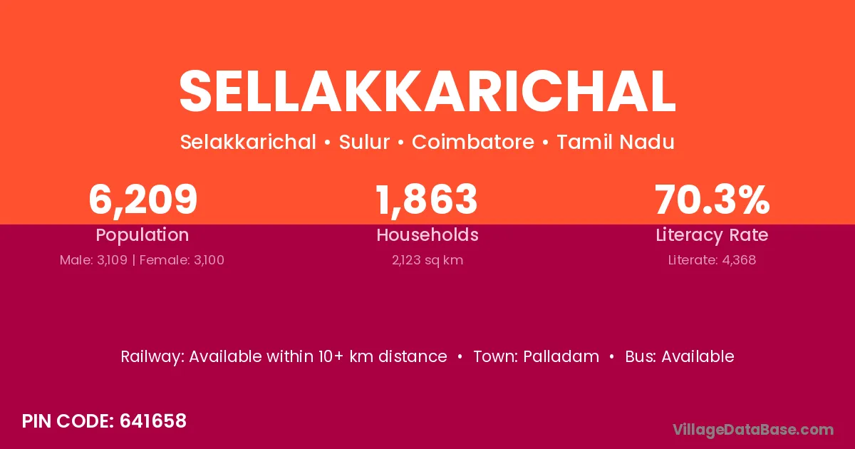 Palladam is the nearest town to Sellakkarichal village for major economic activities