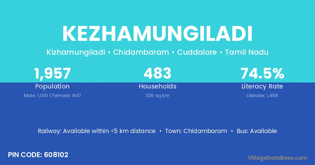 Chidambaram is the nearest town to Kezhamungiladi village for major economic activities