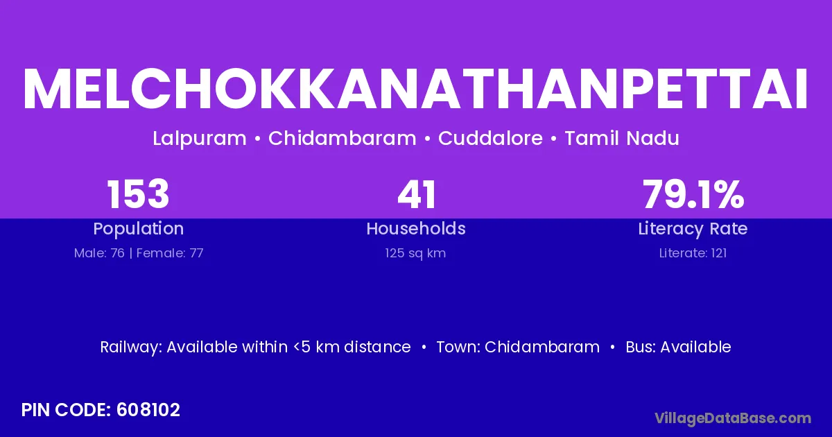 Chidambaram is the nearest town to Melchokkanathanpettai village for major economic activities