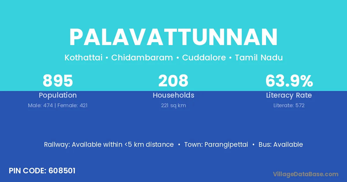 Parangipettai is the nearest town to Palavattunnan village for major economic activities