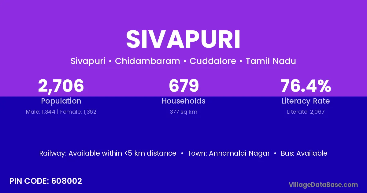 Annamalai Nagar is the nearest town to Sivapuri village for major economic activities