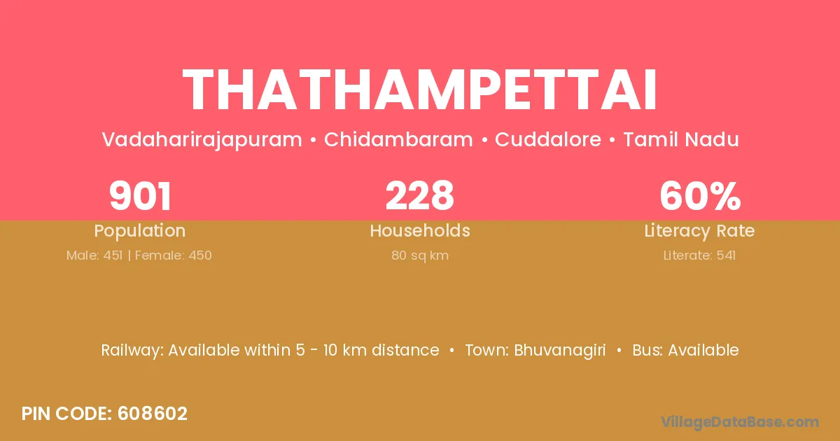 Thathampettai village has a total population of 901 people, of which 451 are males and 450 are females.