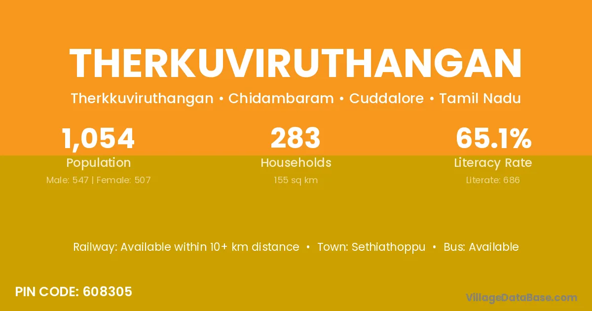 Therkuviruthangan village has a total population of 1,054 people, of which 547 are males and 507 are females.
