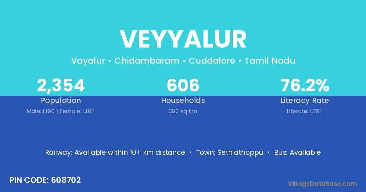 There are approximately 606 households in Veyyalur village.