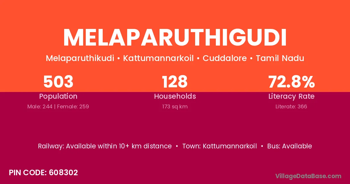 Melaparuthigudi village has a total population of 503 people, of which 244 are males and 259 are females.
