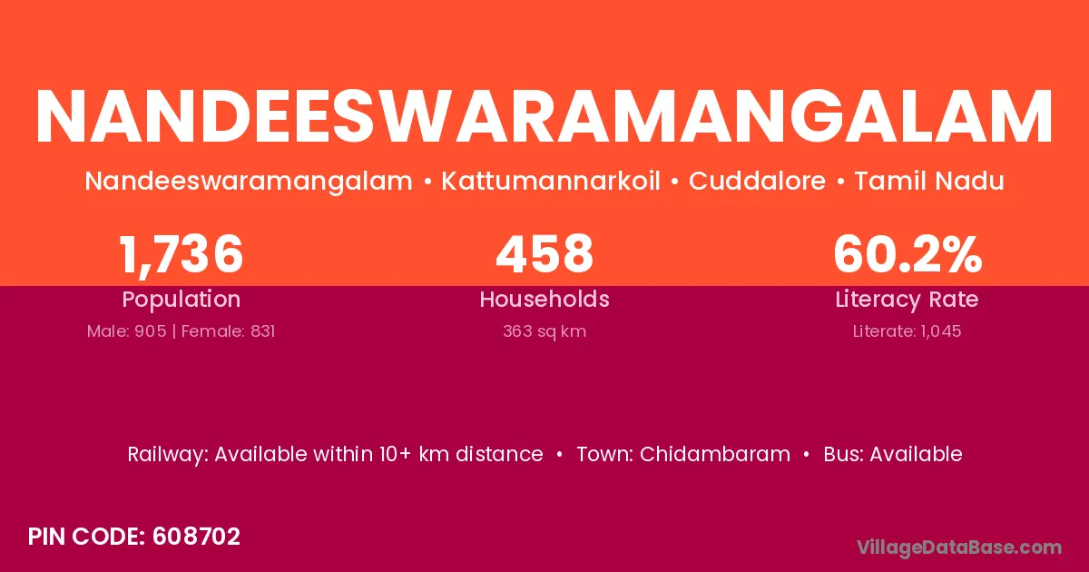 According to Census 2011 information, the village code of Nandeeswaramangalam village is 608702.