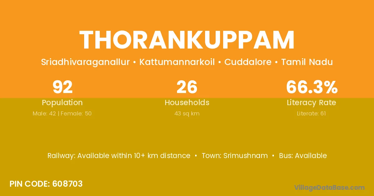 Srimushnam is the nearest town to Thorankuppam village for major economic activities