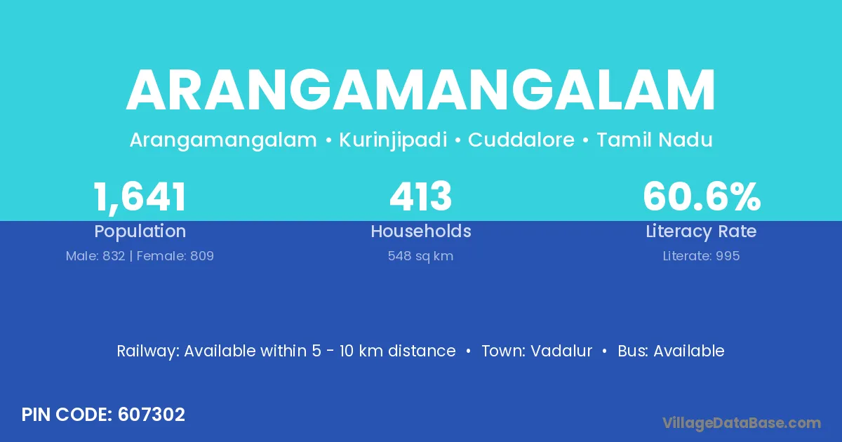 According to Census 2011 information, the village code of Arangamangalam village is 607302.