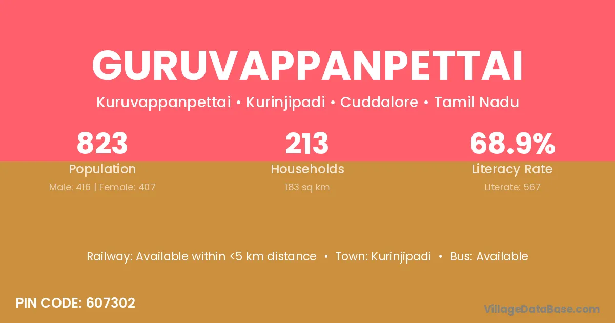 Guruvappanpettai village has a total population of 823 people, of which 416 are males and 407 are females.