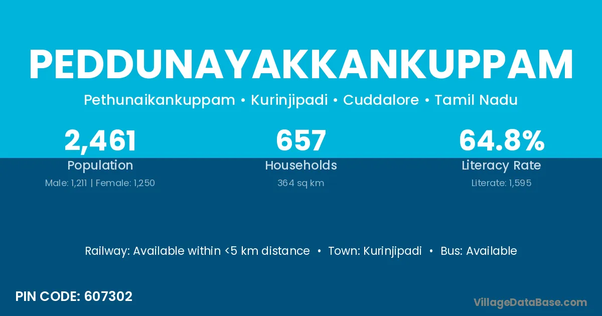 Kurinjipadi is the nearest town to Peddunayakkankuppam village for major economic activities