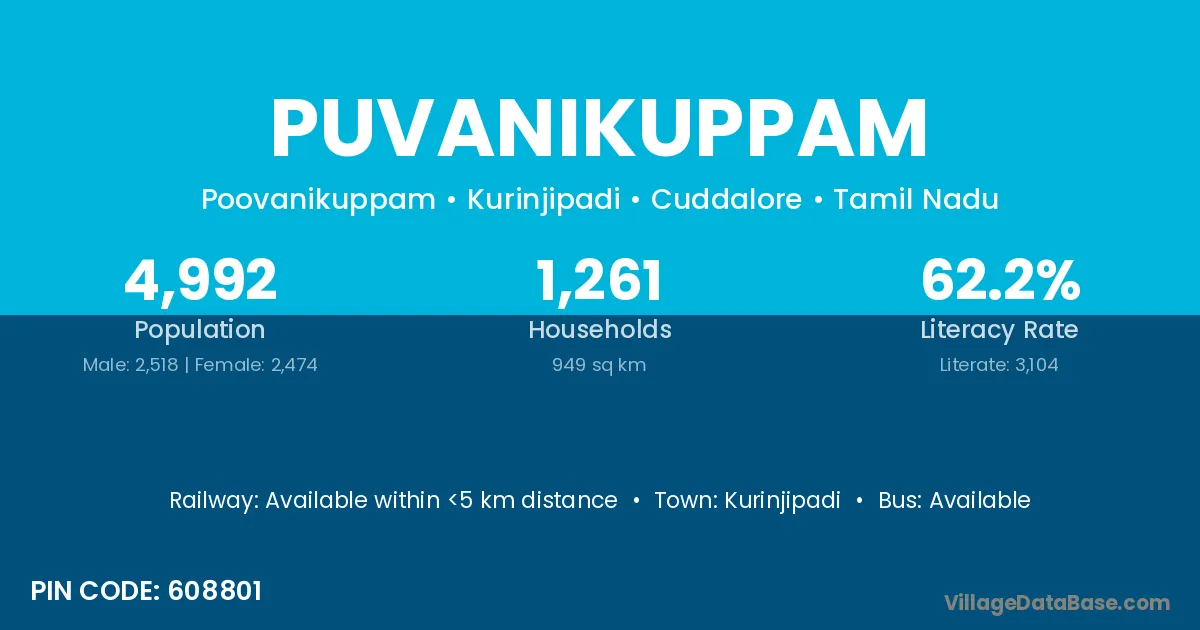 Kurinjipadi is the nearest town to Puvanikuppam village for major economic activities